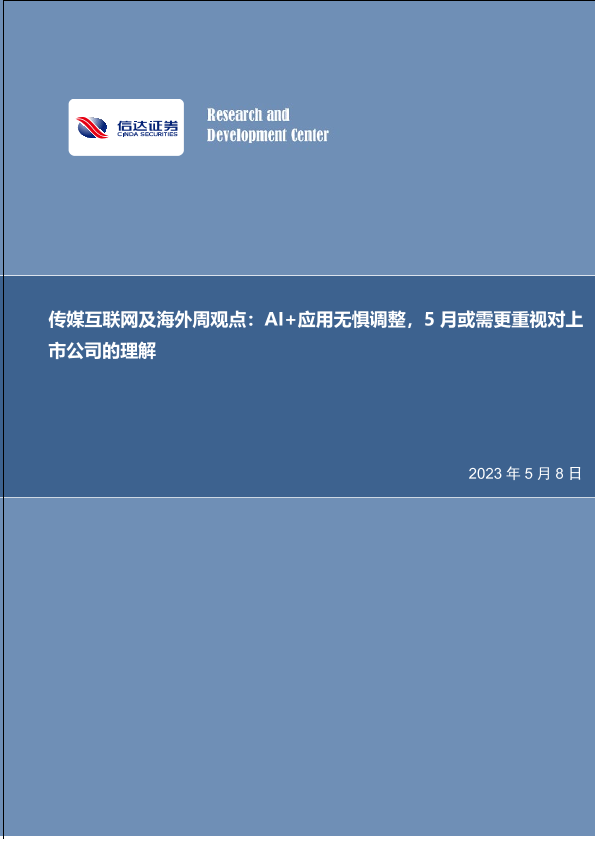 【信达证券】【20230508】传媒互联网及海外周观点:AI+应用无惧调整,5月或需更重视对上市公司的理解-24页