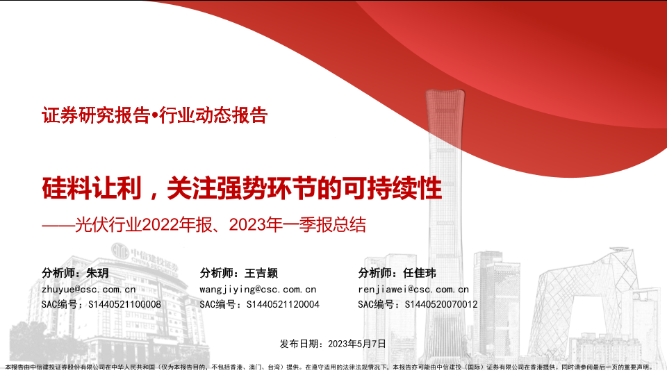【中信建投证券】【20230507】光伏行业2022年报、2023年一季报总结:硅料让利,关注强势环节的可持续性-57页