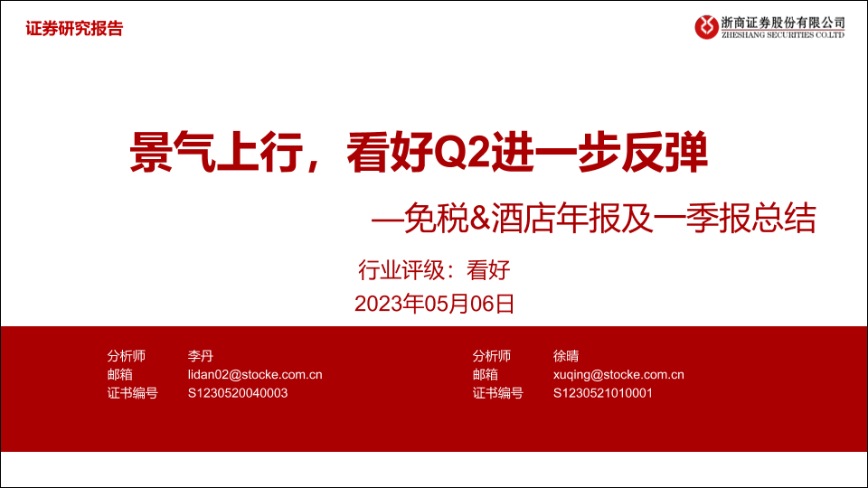 【浙商证券】【20230506】免税&酒店年报及一季报总结:景气上行,看好Q2进一步反弹-22页
