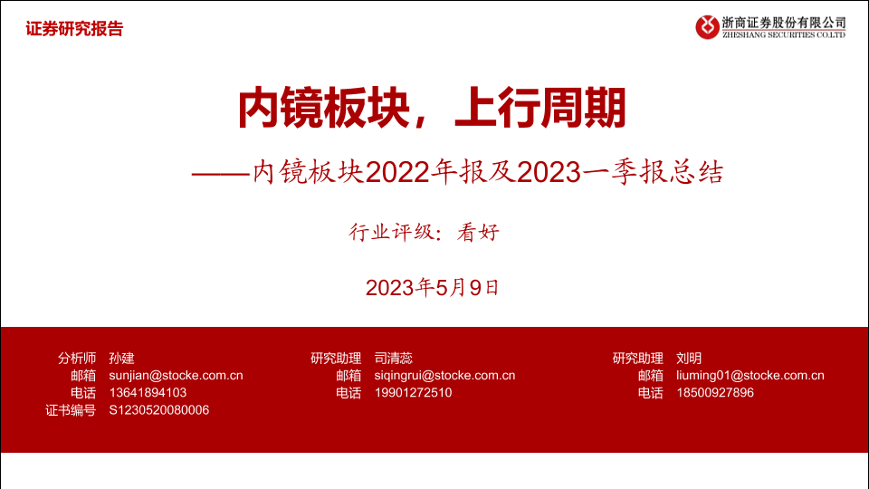 【浙商证券】【20230509】内镜板块2022年报及2023一季报总结:内镜板块,上行周期-20页
