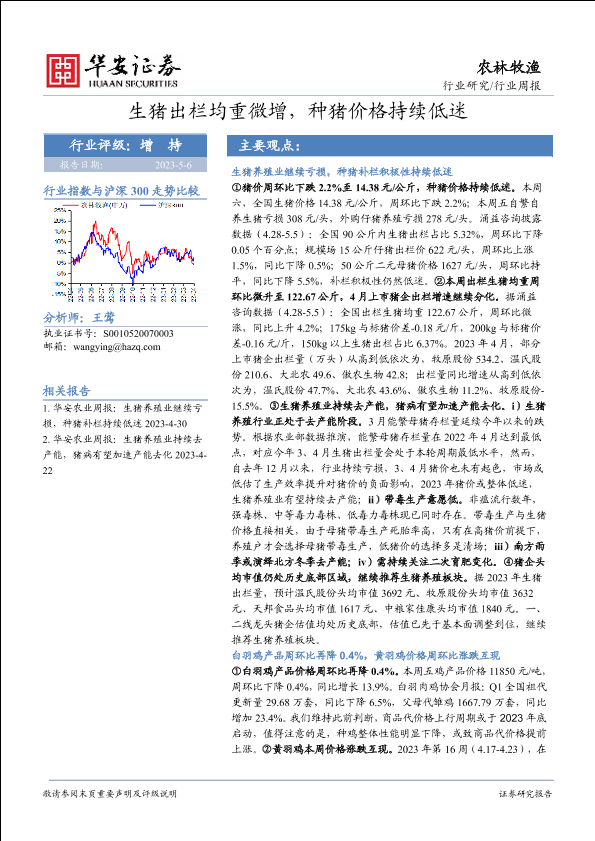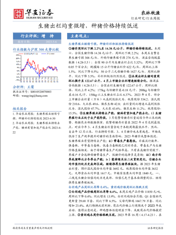 【华安证券】【20230506】农林牧渔行业周报:生猪出栏均重微增,种猪价格持续低迷-42页