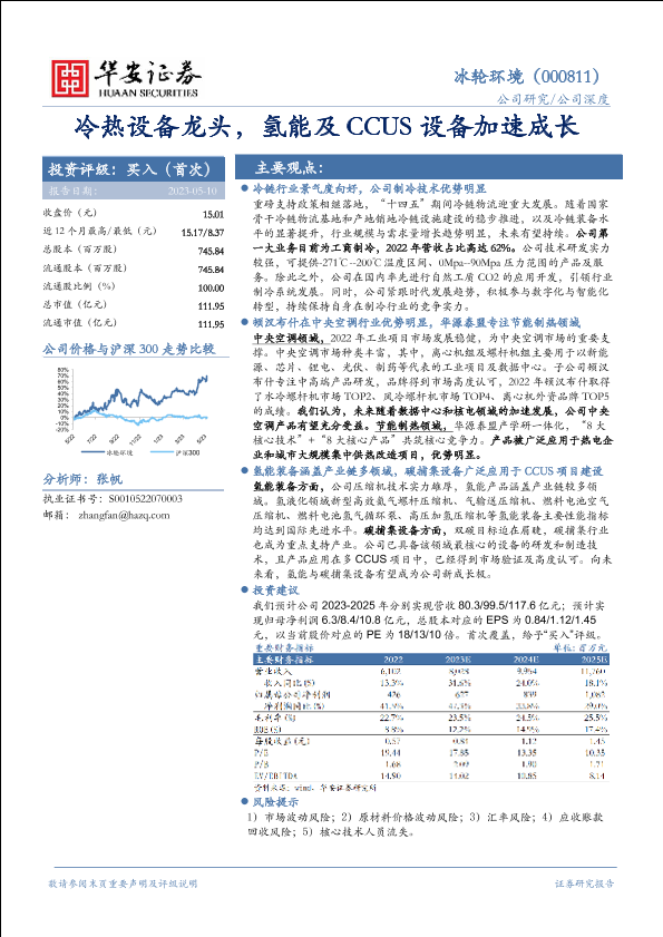 【华安证券】【20230510】冰轮环境(000811)冷热设备龙头,氢能及CCUS设备加速成长-39页