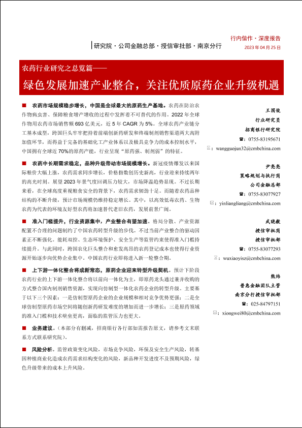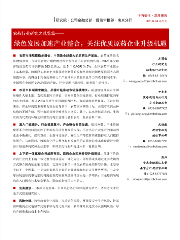 【招商银行】【20230425】农药行业研究之总览篇——绿色发展加速产业整合,关注优质原药企业升级机遇-31页