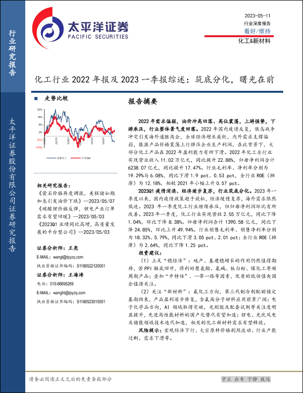 【太平洋证券】【20230511】化工行业2022年报及2023一季报综述:筑底分化,曙光在前-32页
