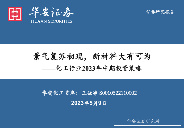 【华安证券】【20230509】化工行业2023年中期投资策略:景气复苏初现,新材料大有可为-98页