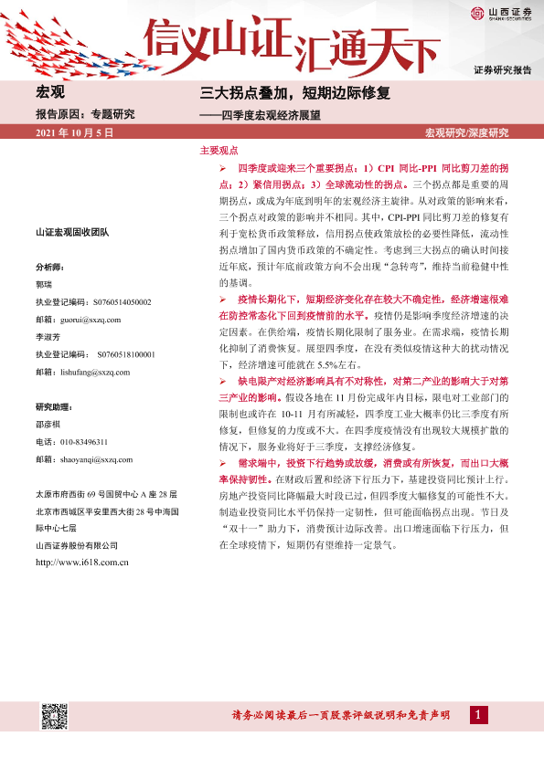 【山西证券】【20211005】四季度宏观经济展望:三大拐点叠加,短期边际修复-23页