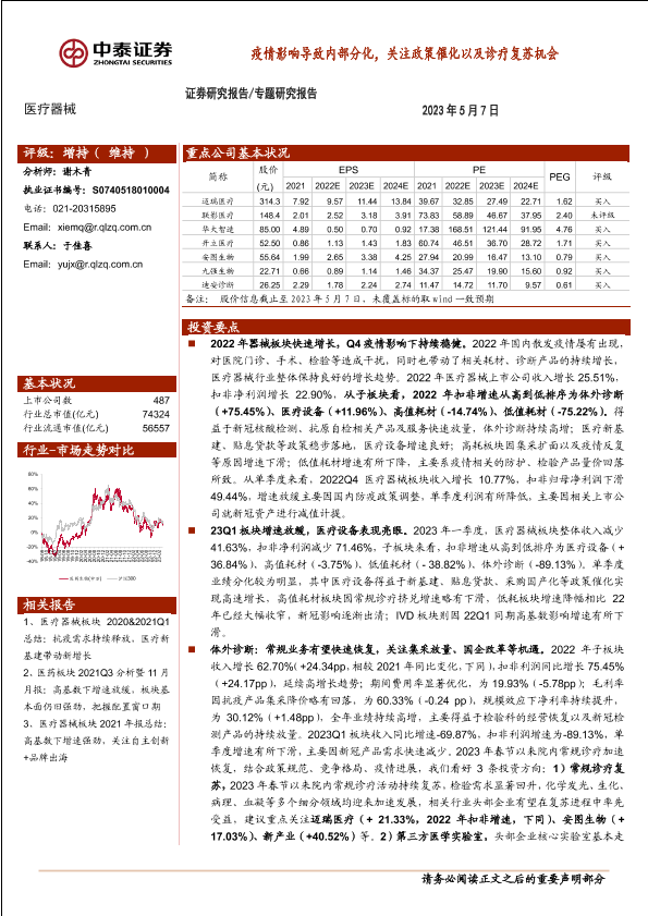 【中泰证券】【20230507】疫情影响导致内部分化,关注政策催化以及诊疗复苏机会-15页