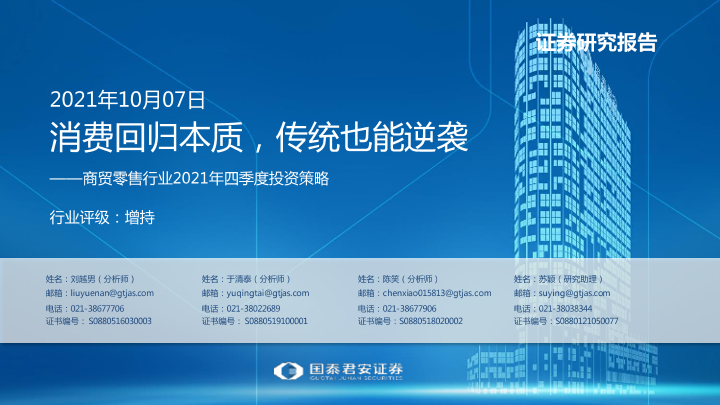 【国泰君安证券】【20211007】商贸零售行业2021年四季度投资策略:消费回归本质,传统也能逆袭-49页