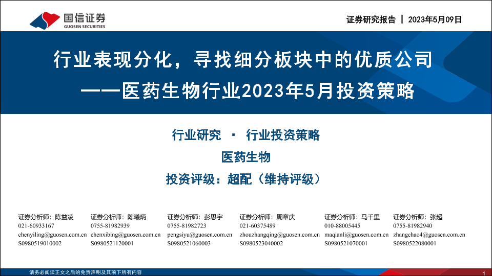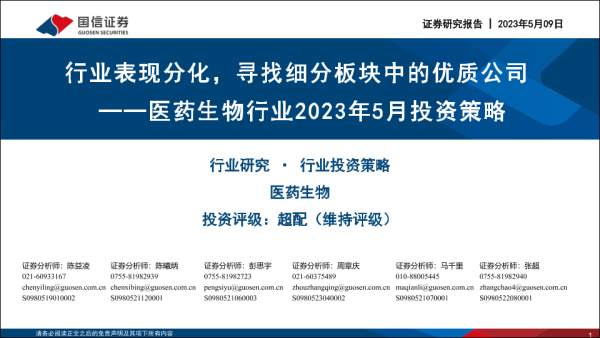 【国信证券】【20230509】医药生物行业2023年5月投资策略:行业表现分化,寻找细分板块中的优质公司-39页