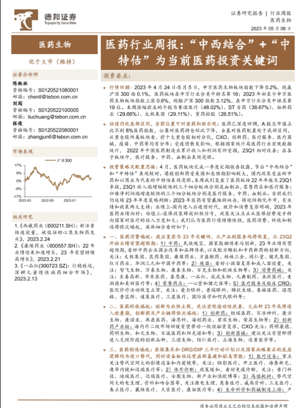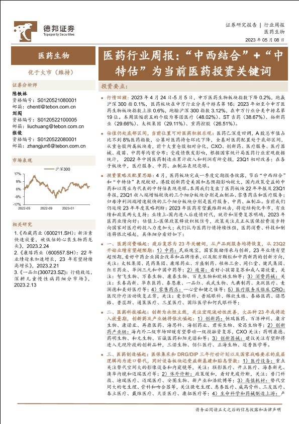 【德邦证券】【20230508】医药行业周报:“中西结合”+“中特估”为当前医药投资关键词-21页