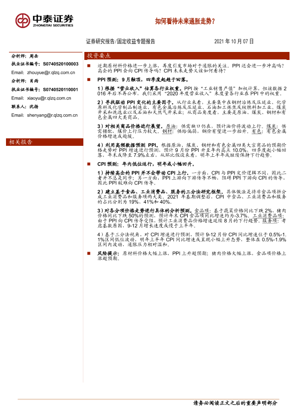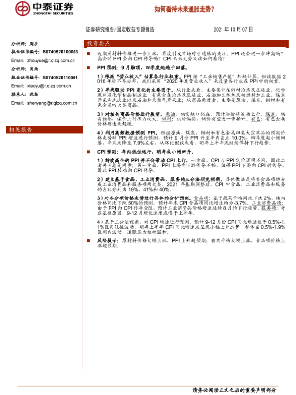 【中泰证券】【20211007】固定收益专题报告:如何看待未来通胀走势?-20页
