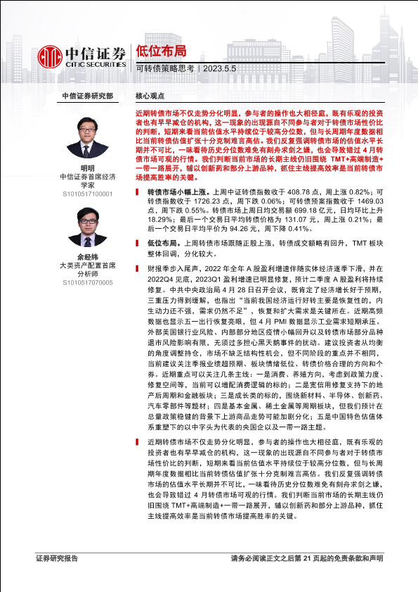【中信证券】【20230505】可转债策略思考:低位布局-22页
