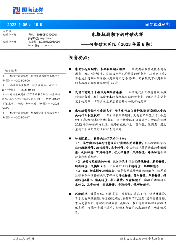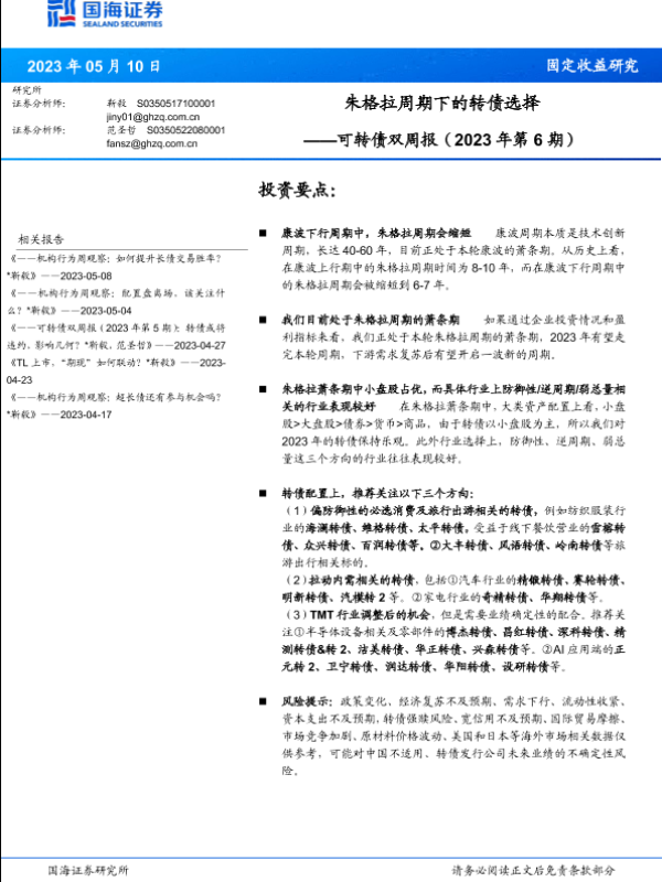 【国海证券】【20230510】可转债双周报(2023年第6期):朱格拉周期下的转债选择-17页
