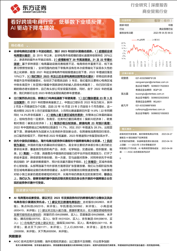 【东方证券】【20230509】商业贸易行业深度报告:看好跨境电商行业,低基数下业绩反弹,AI驱动下降本增效-20页