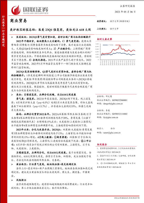 【国联证券】【20230506】商业贸易行业美护珠宝财报总结:医美23Q1强复苏,美妆关注618大促-41页