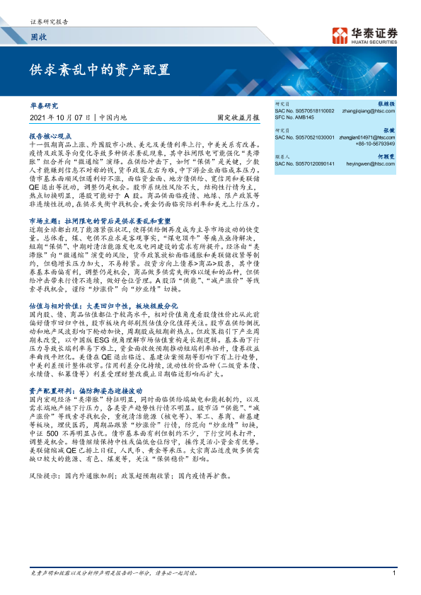 【华泰证券】【20211007】固定收益月报:供求紊乱中的资产配置-23页