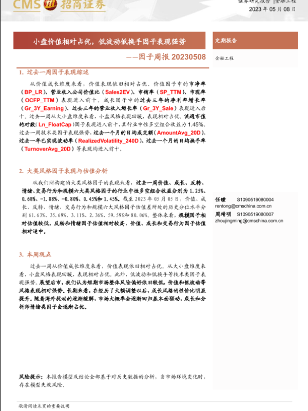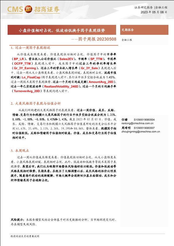 【海通证券】【20230508】因子周报:小盘价值相对占优,低波动低换手因子表现强势-15页