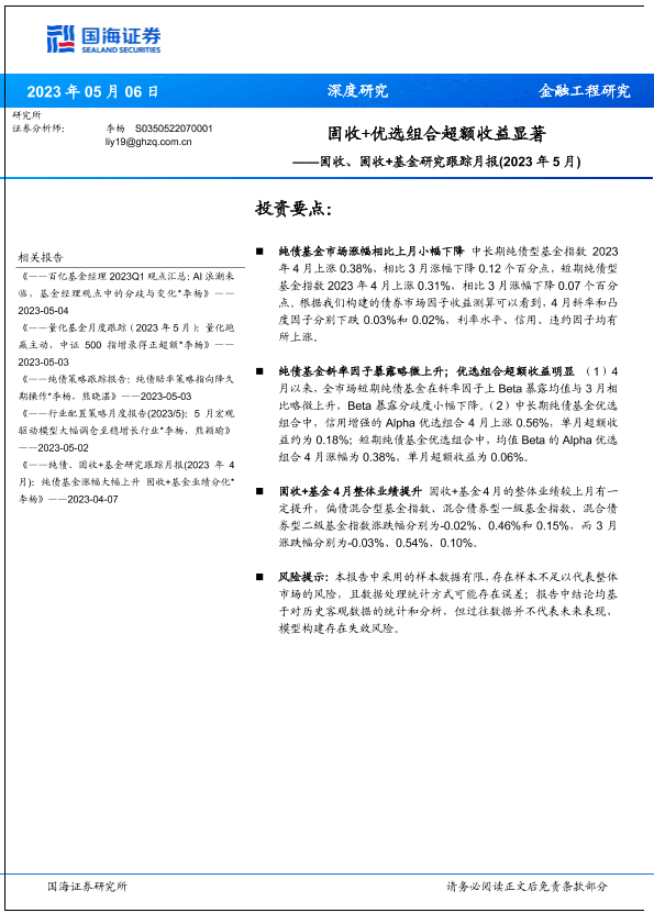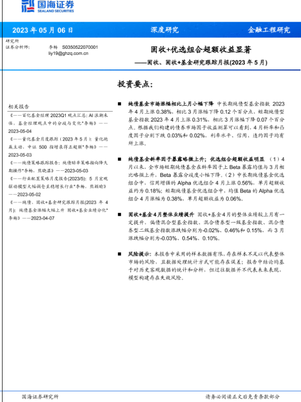【国海证券】【20230506】固收、固收+基金研究跟踪月报(2023年5月):固收+优选组合超额收益显著-21页