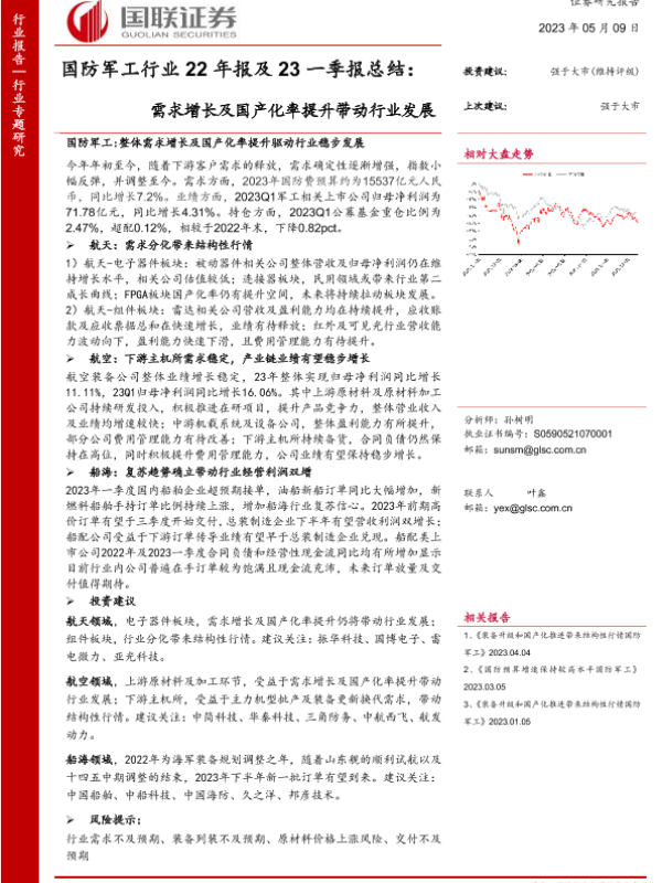 【国联证券】【20230509】国防军工行业22年报及23一季报总结:需求增长及国产化率提升带动行业发展-62页