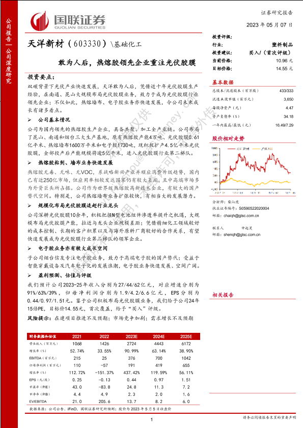 【国联证券】【20230507】天洋新材(603330)敢为人后,热熔胶领先企业重注光伏胶膜-31页