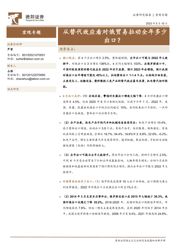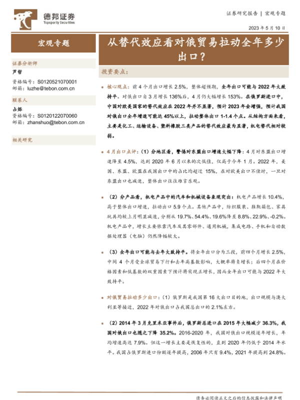 【德邦证券】【20230510】从替代效应看对俄贸易拉动全年多少出口?-15页