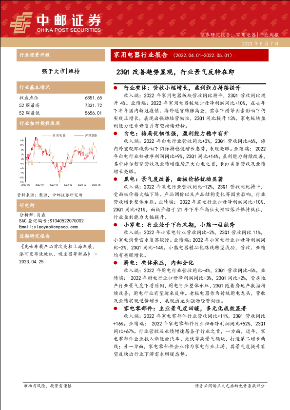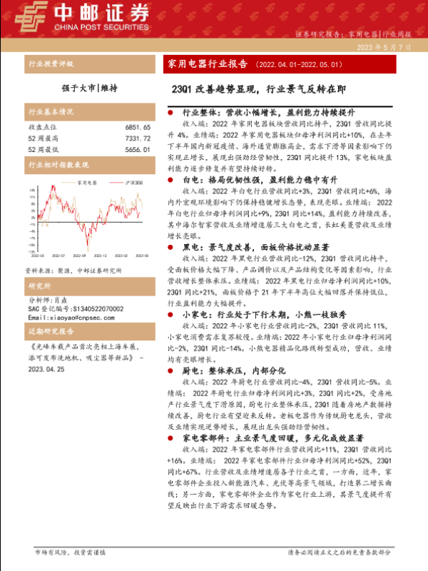 【中邮证券】【20230507】家用电器行业报告:23Q1改善趋势显现,行业景气反转在即-37页