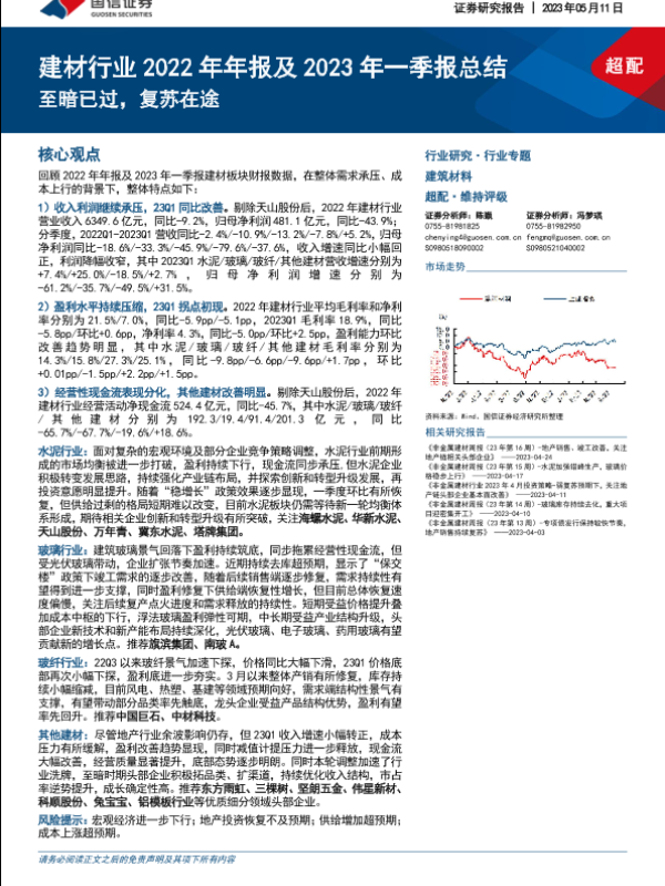 一季度报 国信证券 年报总结 建材行业 行业分析