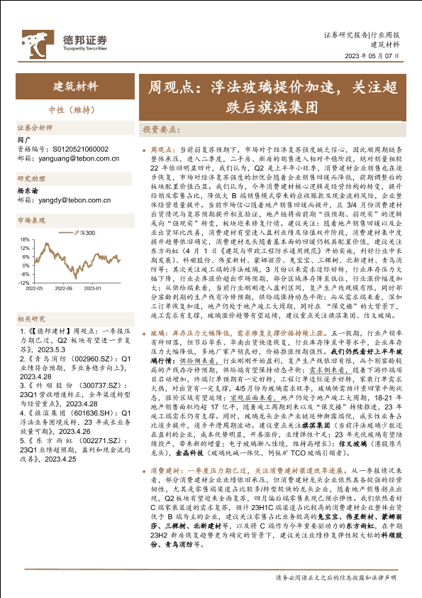 【德邦证券】【20230507】建筑材料行业周观点:浮法玻璃提价加速,关注超跌后旗滨集团-28页