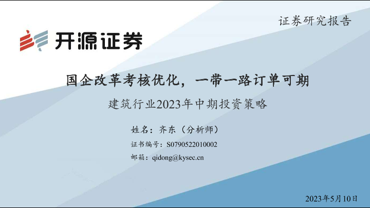 【开源证券】【20230510】建筑行业2023年中期投资策略:国企改革考核优化,一带一路订单可期-29页