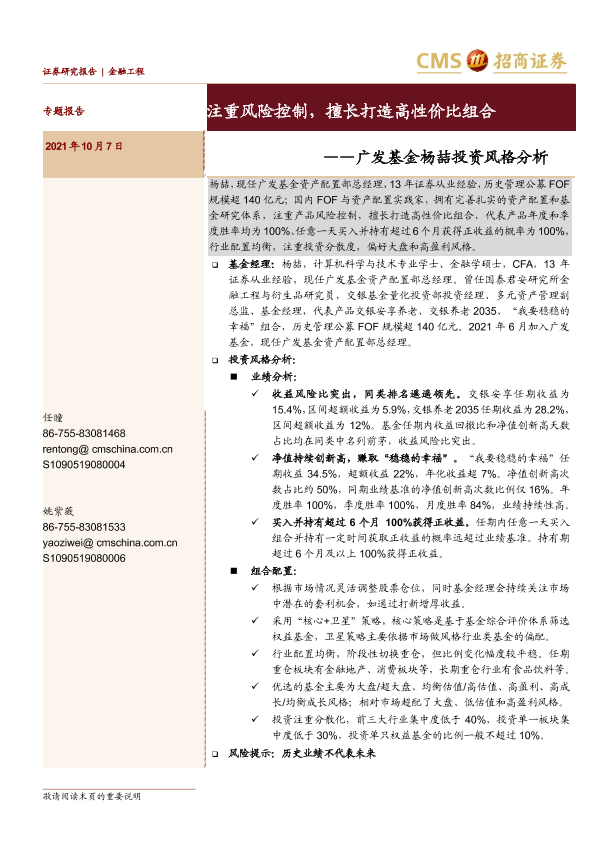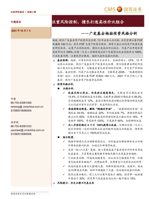 【海通证券】【20211007】广发基金杨喆投资风格分析:注重风险控制,擅长打造高性价比组合-21页