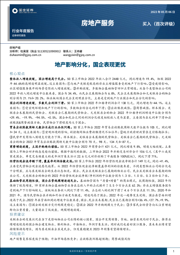 【国金证券】【20230506】房地产服务行业年度报告:地产影响分化,国企表现更优-18页