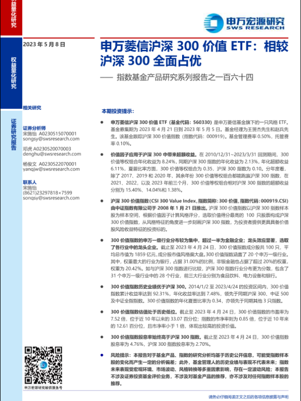 【申万宏源】【20230508】指数基金产品研究系列报告之一百六十四:申万菱信沪深300价值ETF,相较沪深300全面占优-21页