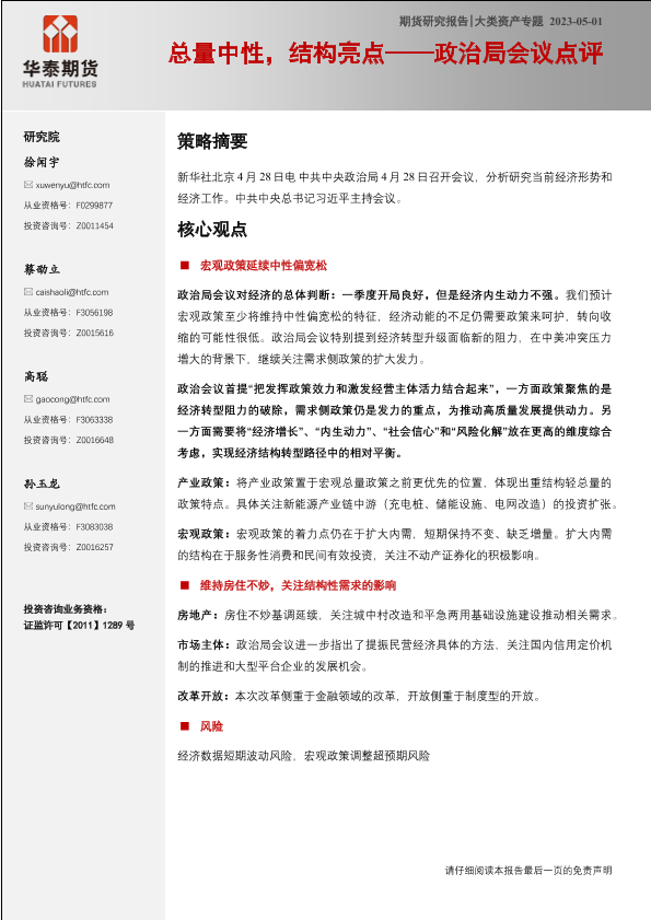 【华泰期货】【20230501】政治局会议点评:总量中性,结构亮点-19页