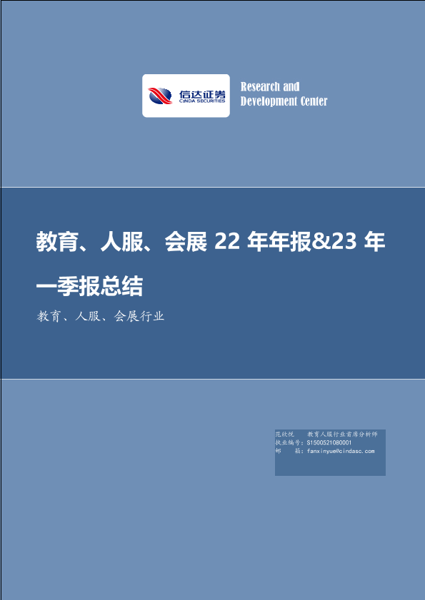 【信达证券】【20230506】教育、人服、会展行业22年年报&23年一季报总结-25页