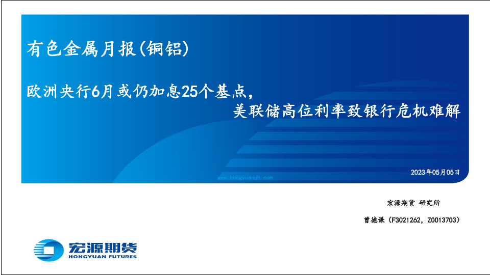 【宏源期货】【20230505】有色金属月报(铜铝):欧洲央行6月或仍加息25个基点,美联储高位利率致银行危机难解-29页