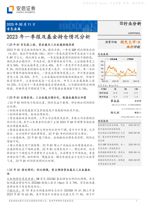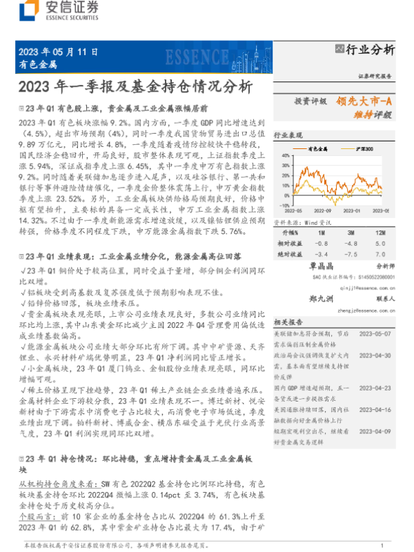 【安信证券】【20230511】有色金属:2023年一季报及基金持仓情况分析-19页