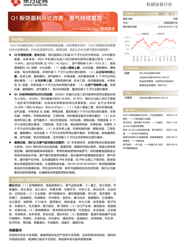 【东方证券】【20230511】机械设备行业深度报告:2022&23Q1财报综述-Q1板块盈利环比改善,景气持续复苏-50页