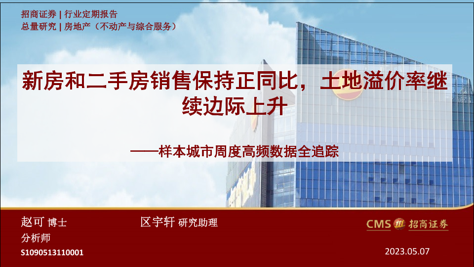 【海通证券】【20230507】样本城市周度高频数据全追踪:新房和二手房销售保持正同比,土地溢价率继续边际上升-24页