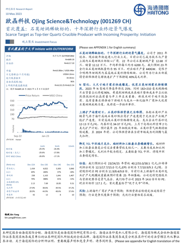 【海通国际】【20230511】欧晶科技首次覆盖:石英坩埚稀缺标的,十年深耕行业终迎景气爆发-27页