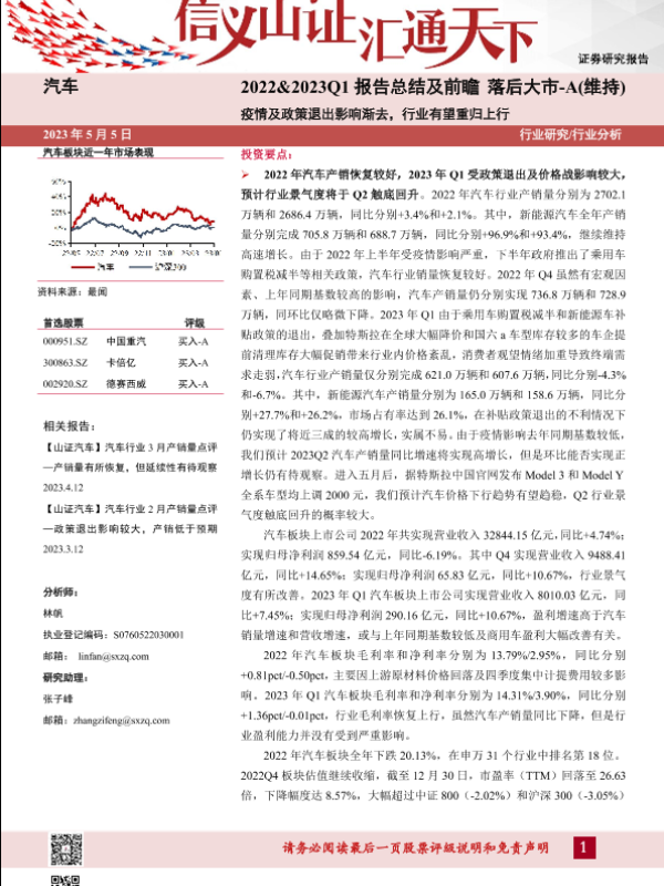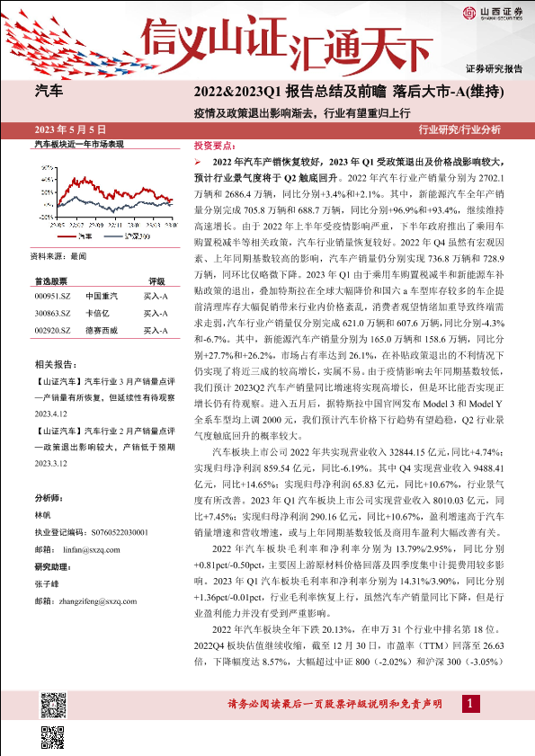 【山西证券】【20230505】汽车行业2022&2023Q1报告总结及前瞻:疫情及政策退出影响渐去,行业有望重归上行-20页