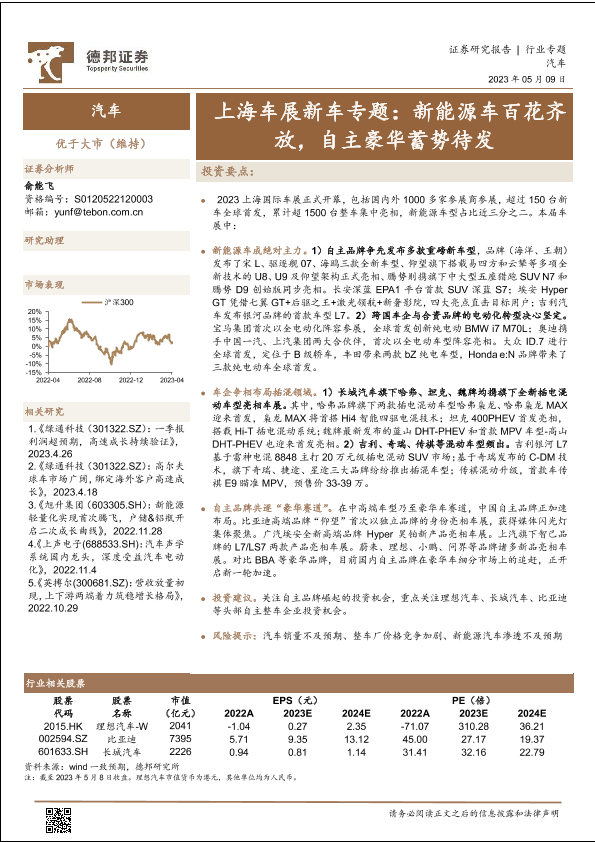 【德邦证券】【20230509】汽车行业上海车展新车专题:新能源车百花齐放,自主豪华蓄势待发-77页
