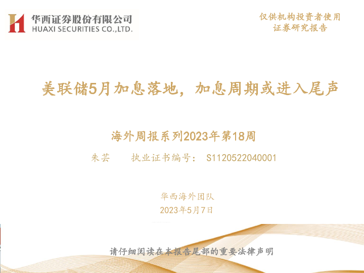 【华西证券】【20230507】海外周报系列2023年第18周:美联储5月加息落地,加息周期或进入尾声-41页