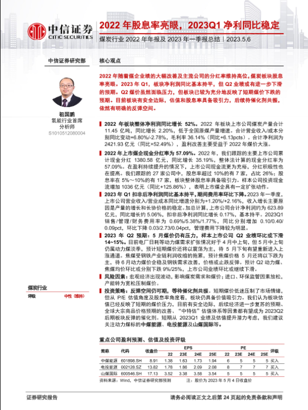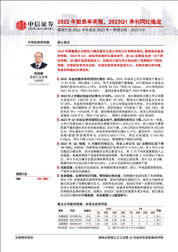 【中信证券】【20230506】煤炭行业2022年年报及2023年一季报总结-25页
