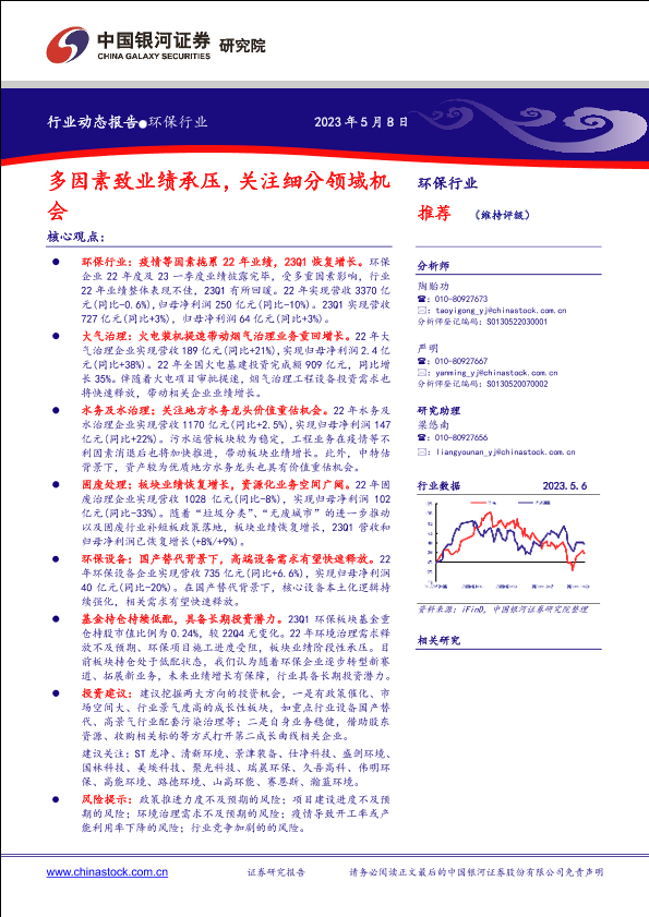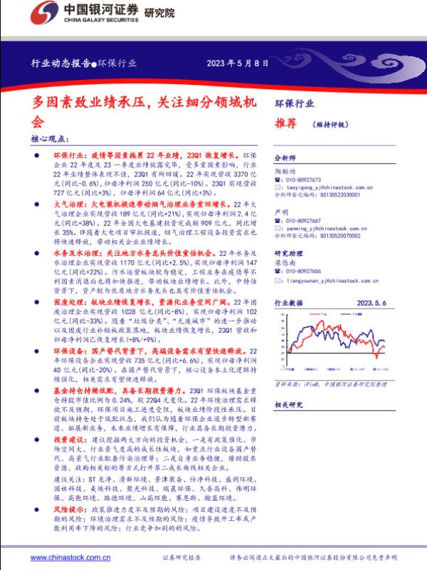 【银河证券】【20230508】环保行业动态报告:多因素致业绩承压,关注细分领域机会-27页