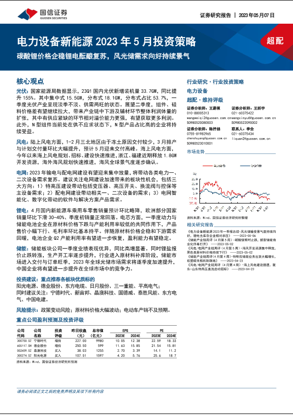 【国信证券】【20230507】电力设备新能源行业2023年5月投资策略:碳酸锂价格企稳锂电酝酿复苏,风光储需求向好持续景气-33页