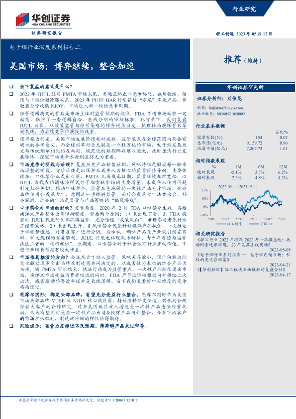 【华创证券】【20230512】电子烟行业深度系列报告二:美国市场:博弈继续,整合加速-24页