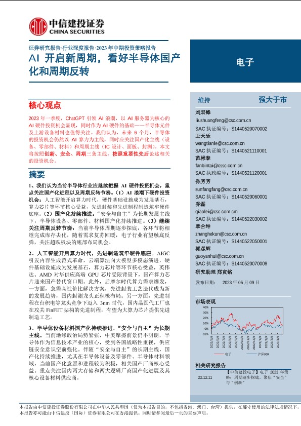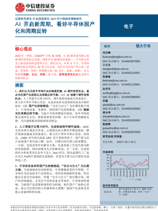 【中信建投证券】【20230509】电子行业2023年中期投资策略报告:AI开启新周期,看好半导体国产化和周期反转-62页