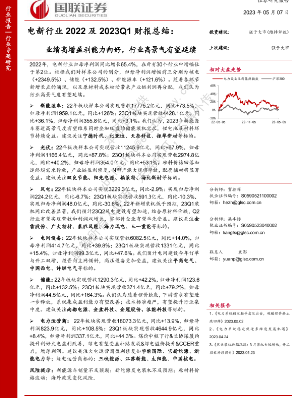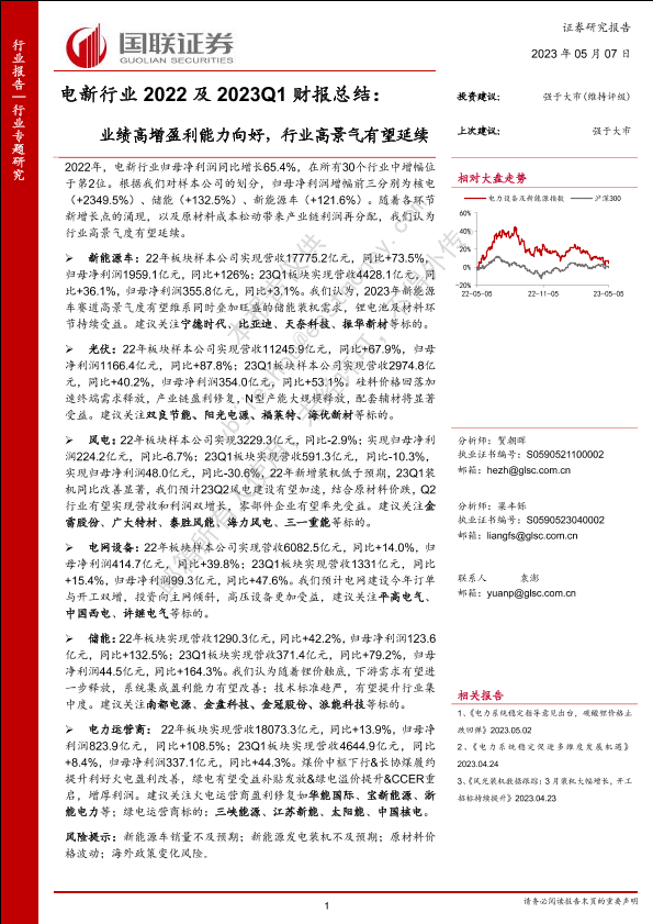 【国联证券】【20230507】电新行业2022及2023Q1财报总结:业绩高增盈利能力向好,行业高景气有望延续-54页