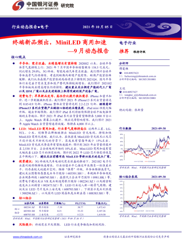 【银河证券】【20211005】电子行业9月动态报告:终端新品频出,MiniLED商用加速-29页