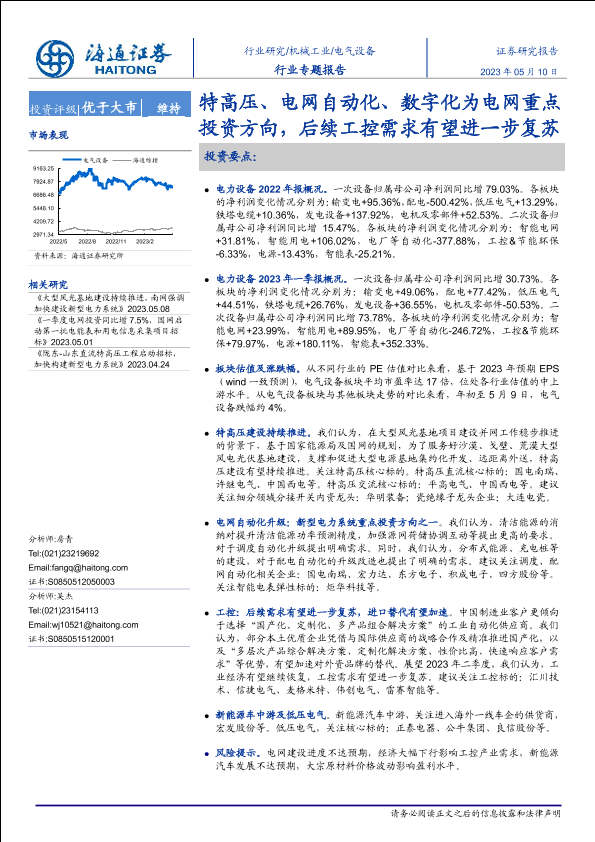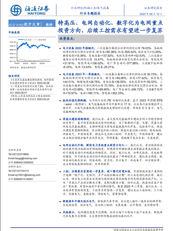 【海通证券】【20230510】电气设备行业专题报告:特高压、电网自动化、数字化为电网重点投资方向,后续工控需求有望进一步复苏-29页